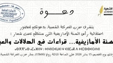 اخبار الحركة الشعبية بالرباطتستعد الأمانة العامة لحزب الحركة الشعبية لتنظيم لقاء فكري وثقافي بمناسبة الاحتفال برأس السنة الأمازيغية، وذلك يوم…